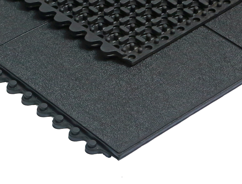 • This rubber floor mat provides comfort and fatigue relief from prolonged standing in the workplace. Improves worker efficiency and productivity.